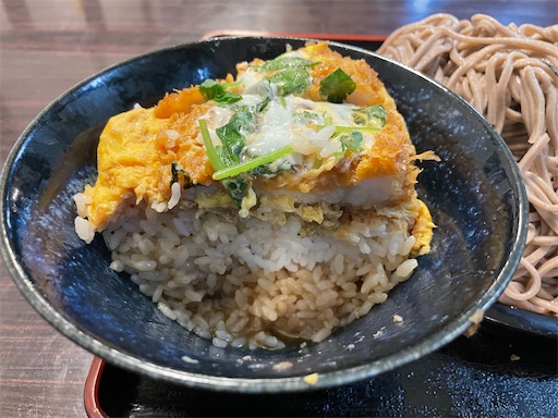 ざるそばを大盛りにすると、カツ丼のライスの量を大、中、小から選ぶことができるみたいです。