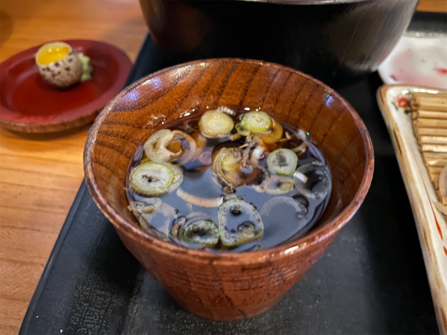 薬味にうずらの卵付きです。わさびとうずらの卵は味変用にとっておきます。
