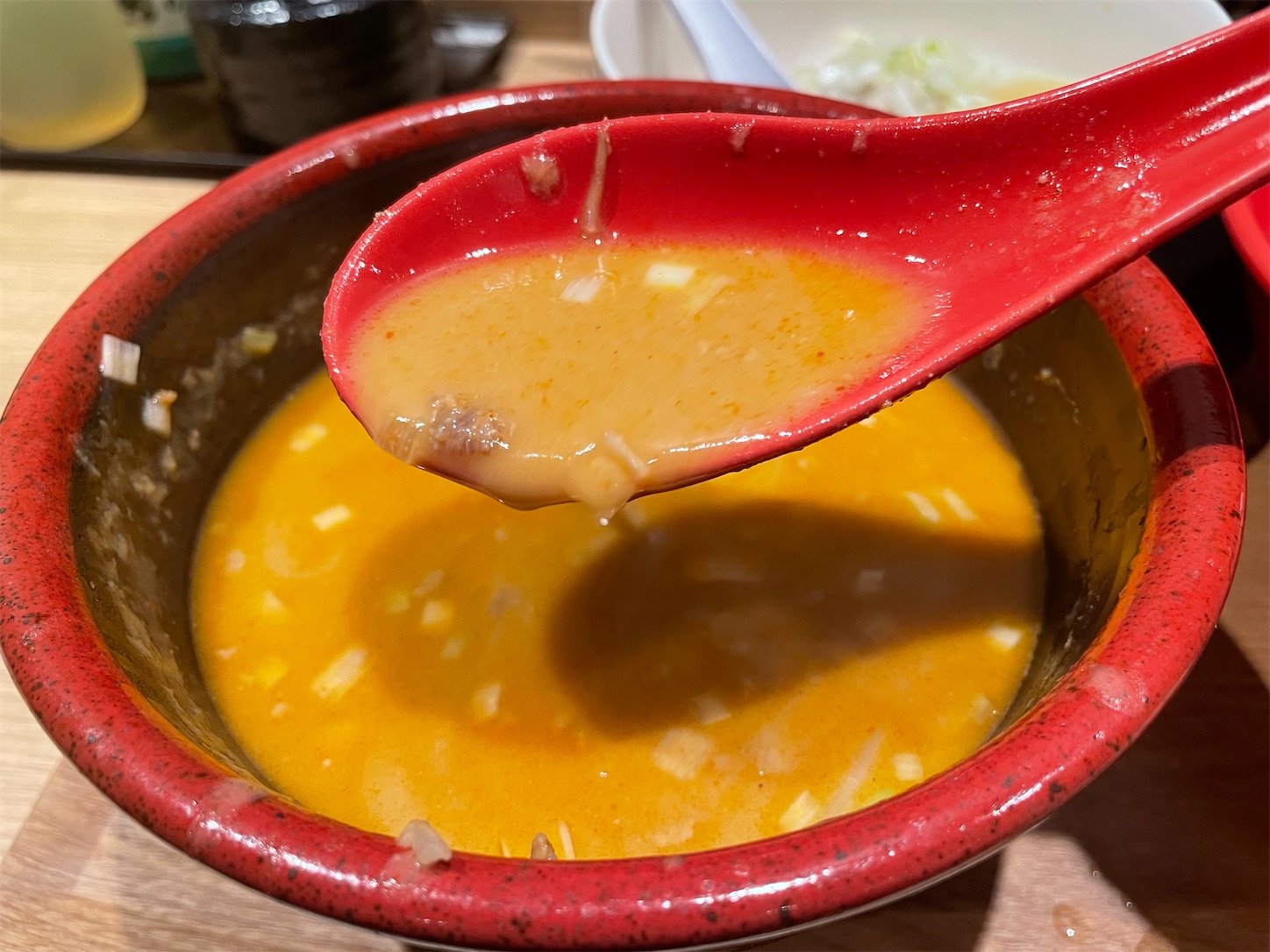 スープは担々麺の白ごまの濃厚さに魚粉による旨みがプラスされています。