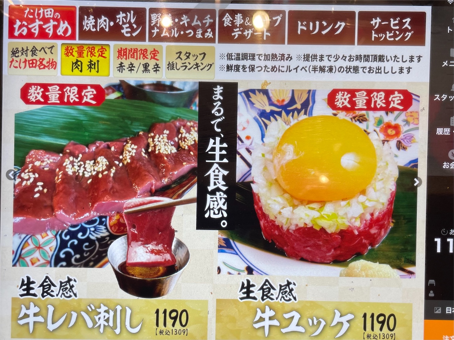 このメニューはLINE登録している方がお得に食べれるメニューです。パネルには出てこなくて、直接店員さんに注文になります。