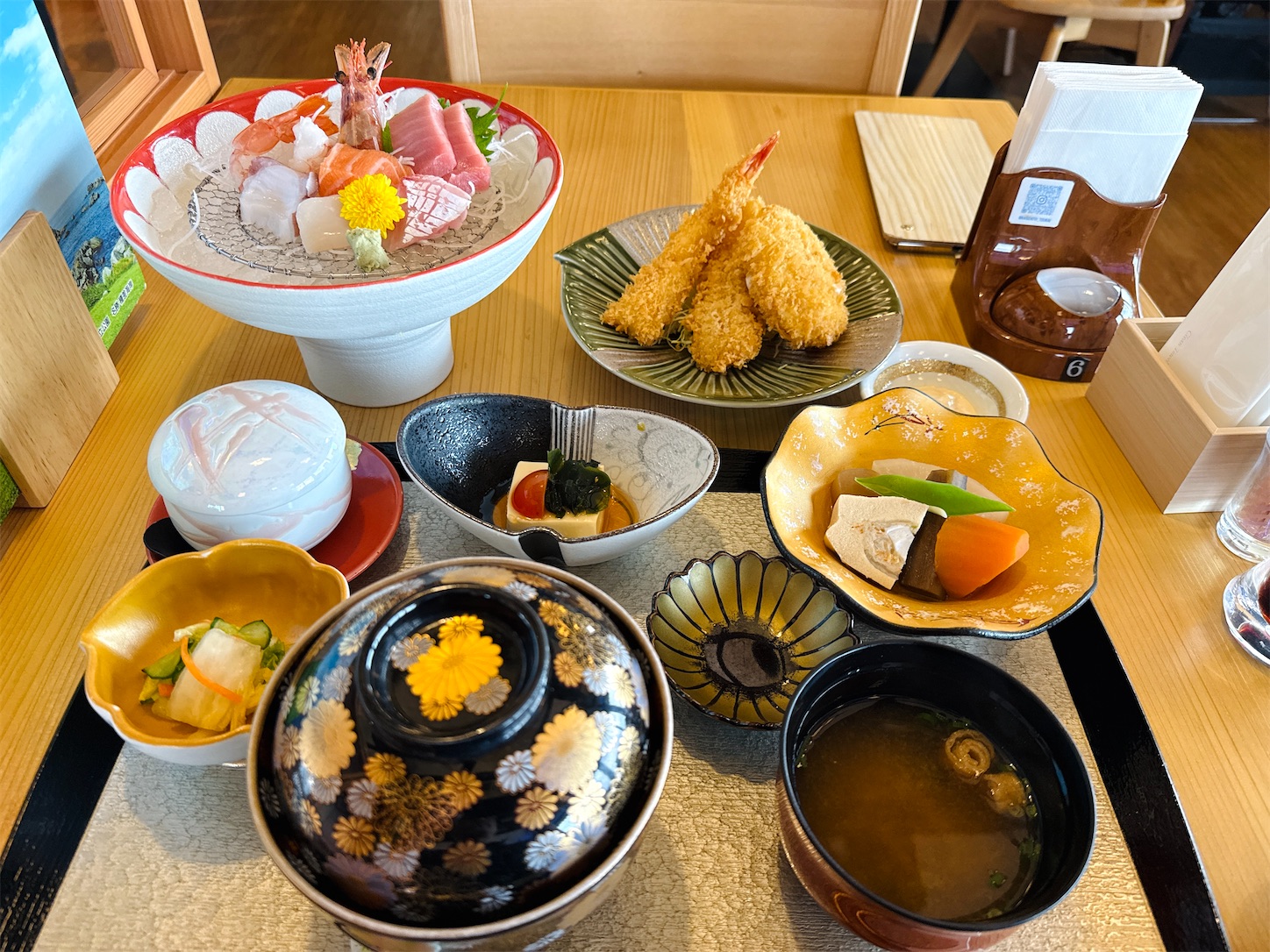 料理も器も綺麗ですよね。ごはん茶碗の蓋とかも絶対に落として割りたく無いから、取ったら袖とかがぶつからない場所に置いて安全確保から始まるんですよ。(笑)