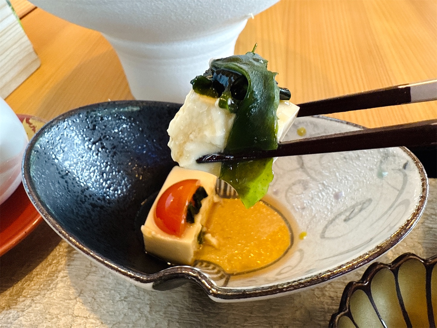 もう一つの小鉢は青じそドレッシングのかかったお豆腐で、さっぱりしていました。