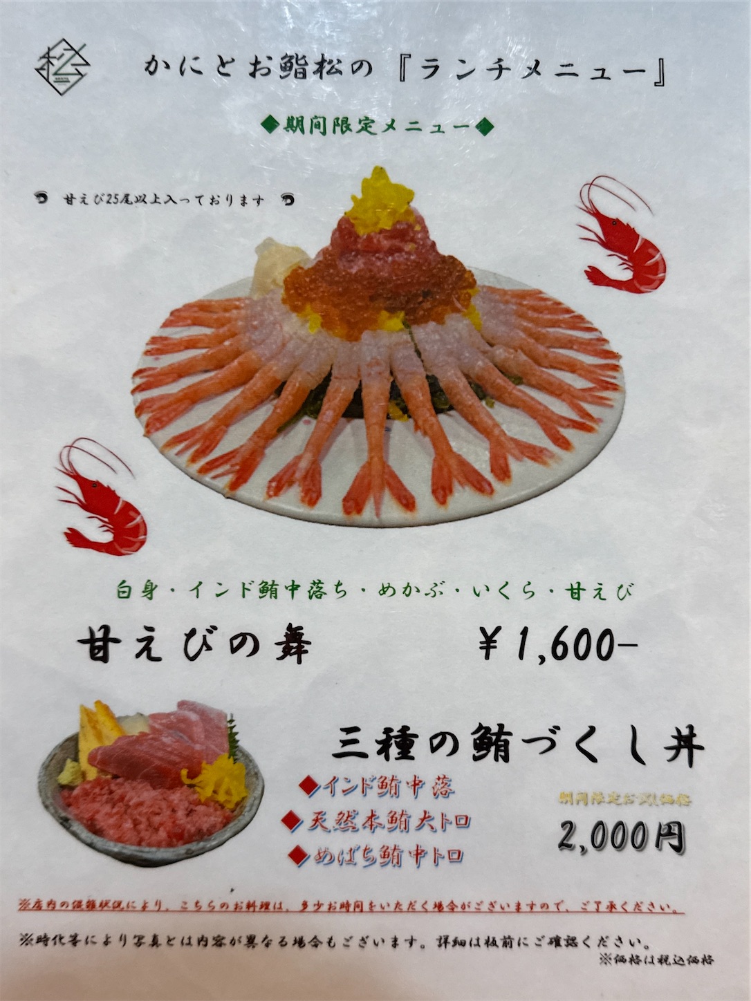 今回はかにとお鮨 松さんでランチメニューの海鮮丼の松を食べて来ました。